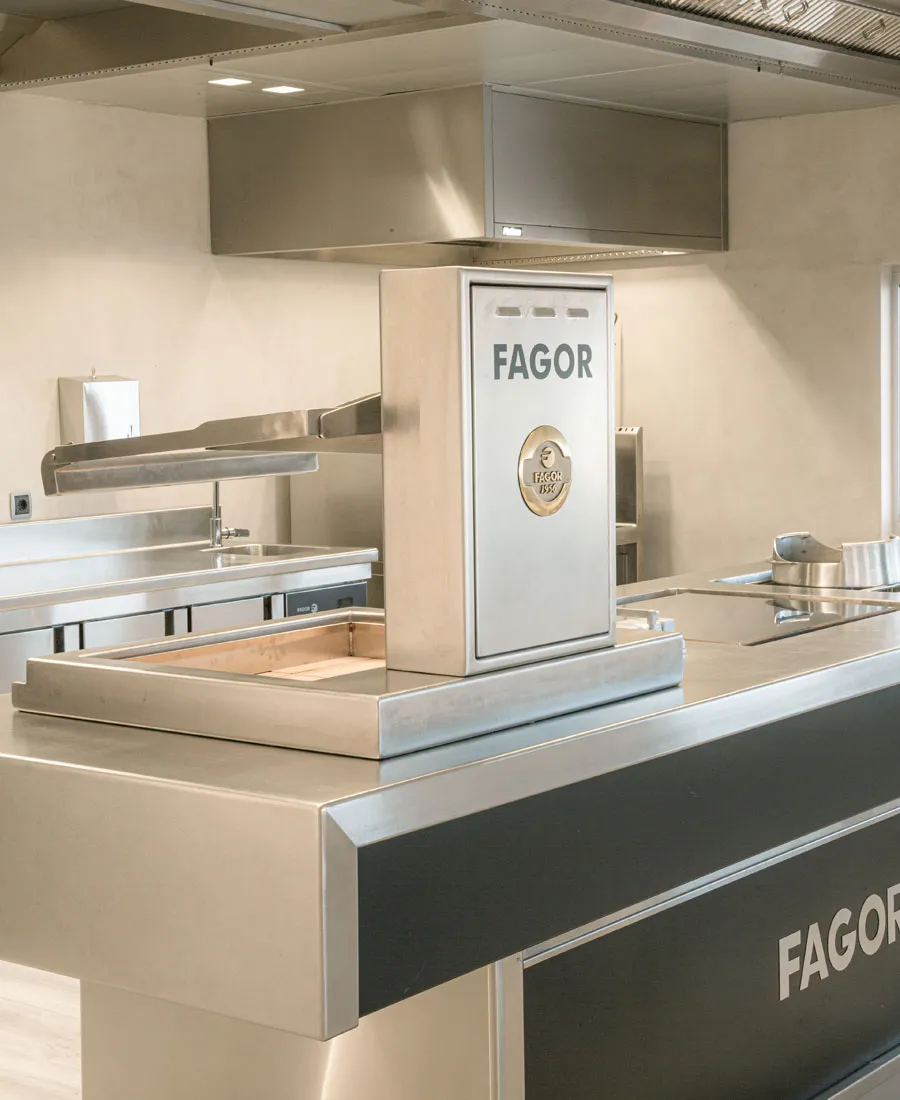 Ponemos a disposición de chefs y profesionales del sector, un showcooking con equipación de última generación, ideal para formaciones, degustaciones y demostraciones en vivo. Además, contamos con un salón para eventos privados, diseñado para quienes buscan una inmersión total en la alta cocina.